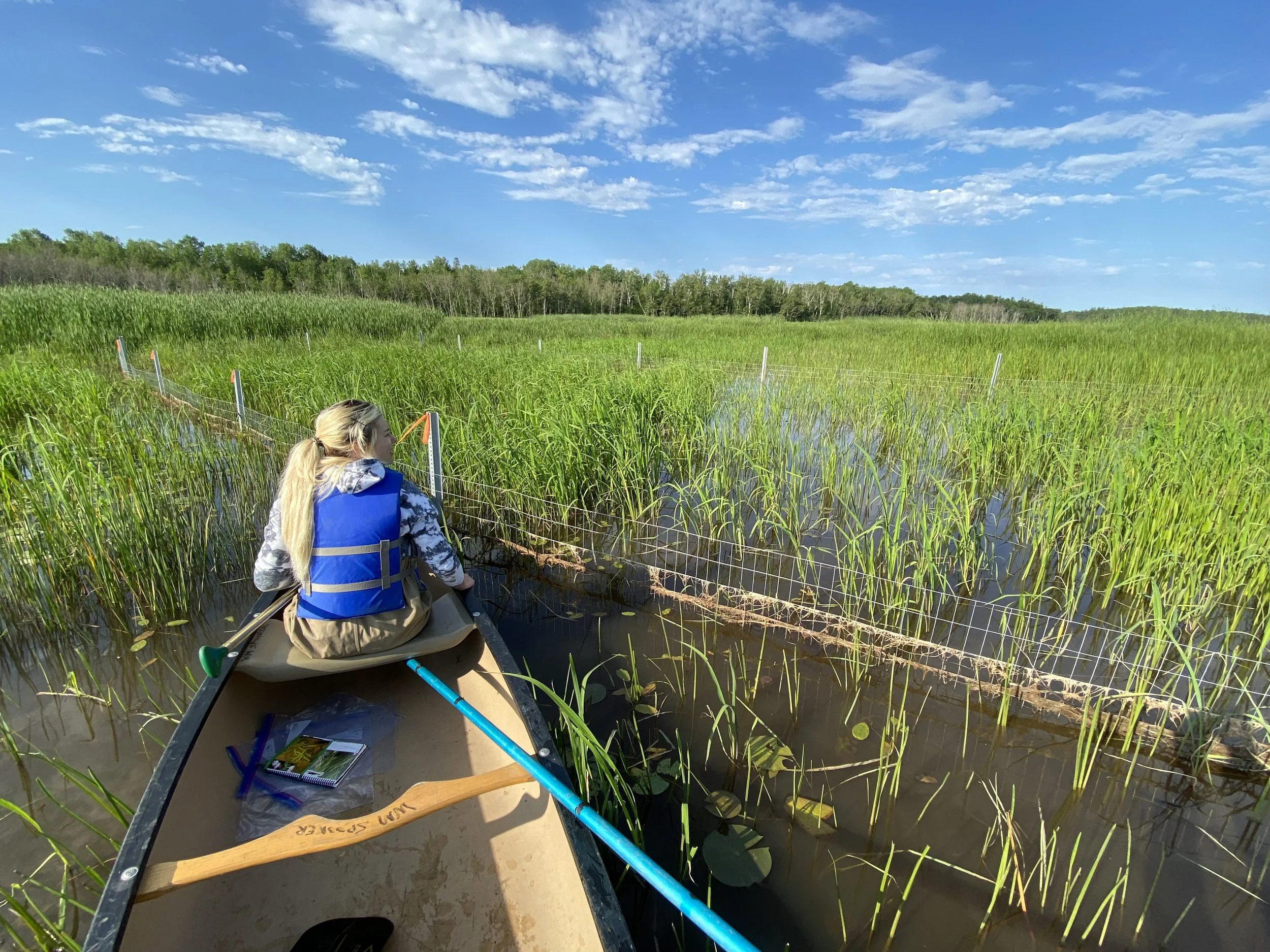 Since 2015, Wisconsin DNR has been working to restore wild rice (manoomin, translated as “good berry,” in Ojibwe) in the estuary as part of the Manoomin Restoration Partnership. Restoration in Allouez Bay has included planting 5,971 pounds of rice seed in the bay, monitoring, protecting rice from grazing geese, and community outreach. Currently DNR is partnering with the St. Louis River Alliance to plant rice with volunteers in Allouez Bay. Manoomin restoration requires long-term efforts, and after ten years, we are now seeing wild rice returning to Allouez Bay.