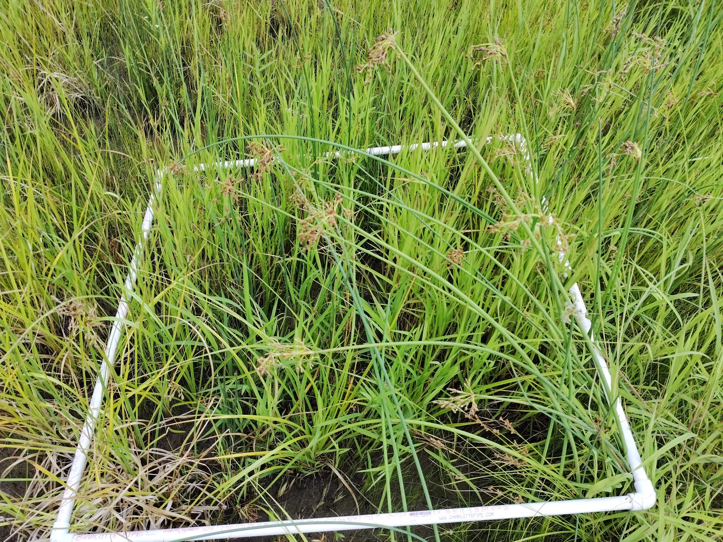 Photo: This frame, called a quadrat, defines the sample area in which the number & types of aquatic plants are counted. The 2025 "veg" & "bug" sampling took place at Grassy Point, Kingsbury Bay, Perch Lake & Munger Landing in MN & at Pickle Pond in WI, provide by University of Wisconsin Superior.