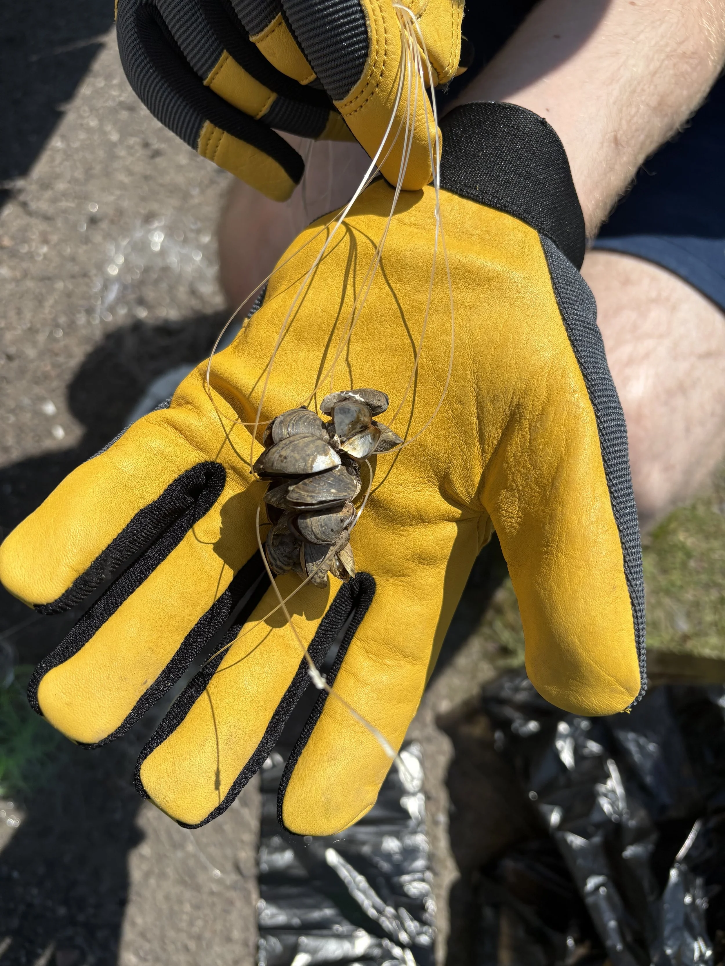 There are several native freshwater mussels found in the lower St. Louis River. Mussels require a firm substrate on which to attach; so far, they have only been documented in the stretch below the Fond du Lac dam, the dredged river channel and the industrial harbor flats. The lower St. Louis River was sampled for mussels in 2000, when eight native species were documented. Non-native zebra and quagga mussels were also present.